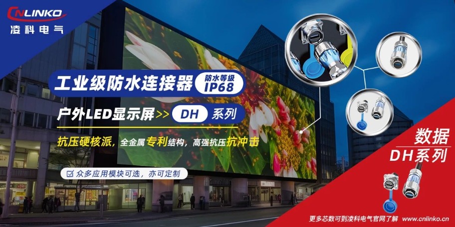 凌科上述DH系列工業(yè)級連接器,采用全合金外殼機械強度高,且在連接結構的方式上采用了螺旋卡口式連接設計,連接牢靠度高,更穩(wěn)固,更抗振抗沖擊。同時在IP68防水,耐高低溫,防腐耐蝕等方面優(yōu)勢突出,其USB連接器配置有USB2.0款和USB3.0款,匹配不同的速率要求,可滿足戶外LED顯示屏數(shù)據(jù)傳輸?shù)母咝?、準確性和流暢性等技術訴求。