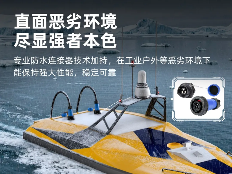 無(wú)人船是水域監(jiān)測(cè)、水質(zhì)采樣、測(cè)繪等方面的關(guān)鍵設(shè)備,其電氣連接的高防護(hù)性、環(huán)境耐受性及空間適應(yīng)性,是保障無(wú)人船作業(yè)可靠與效能的核心要素。